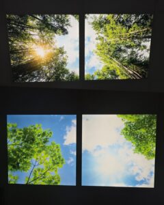 Ciel bleu, feuillages, lumière du soleil, montgolfière… Ces visuels immersifs apportent une touche de nature et de douceur au cœur d’un environnement hospitalier souvent perçu comme technique et source d’appréhension.