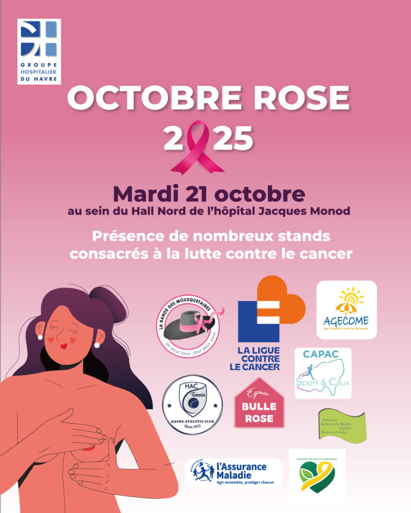 Dans le cadre d’Octobre Rose, une journée de sensibilisation à la lutte contre le cancer du sein se tiendra le mardi 21 octobre 2025, de 9h à 17h, dans le hall Nord de l’hôpital Jacques Monod.
