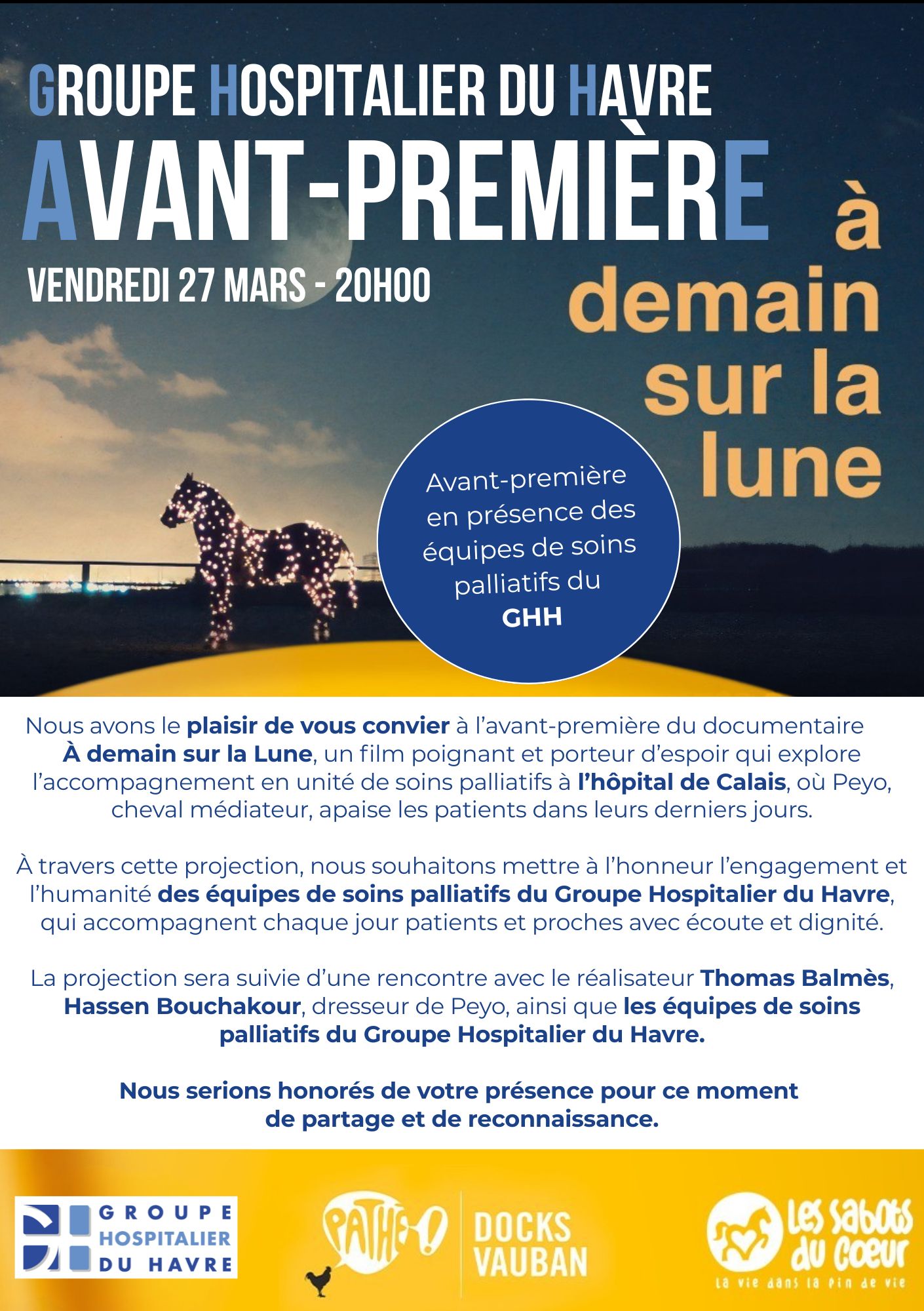 📅 Vendredi 27 mars – 20h 🎥 Projection suivie d’une rencontre avec le réalisateur Thomas Balmès, Hassen Bouchakour, dresseur du cheval médiateur Peyo, ainsi que les équipes de soins palliatifs du Groupe Hospitalier du Havre.