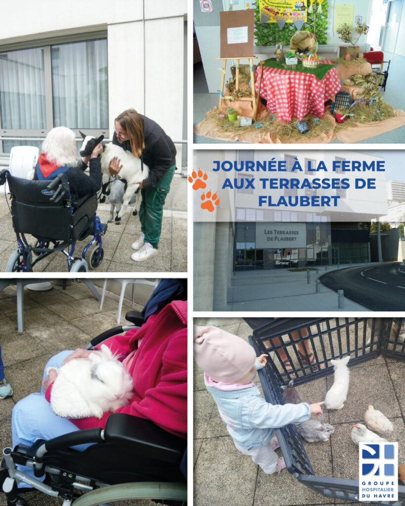 Mercredi 24 septembre, les animaux de La petite ferme aux merveilles 🐑🐇🐓 ont investi le Patio des Terrasses de Flaubert pour la journée. Résidents, patients, familles 👨👩👧👦, bénévoles et équipes ont ainsi pu, tout au long de la journée, déambuler dans le patio pour observer les animaux, les caresser et même les nourrir.