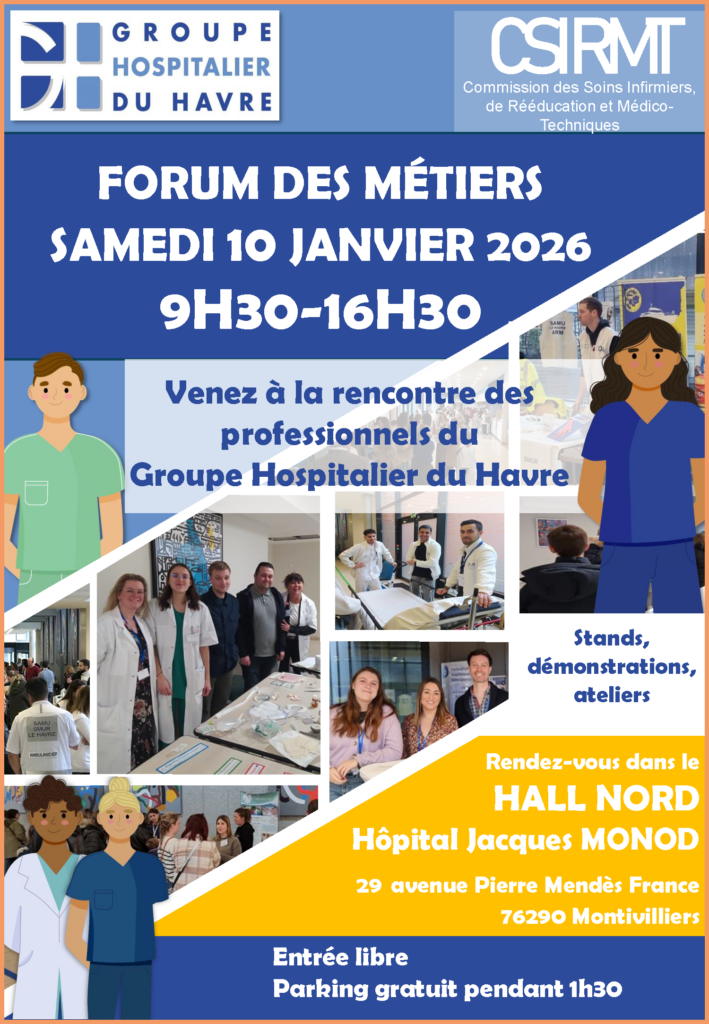 venez nous rencontrer samedi 10 janvier 2026, de 9h30-16h30 dans le hall nord de l’hôpital Jacques Monod (29 avenue Pierre Mendès France 76290 Montivilliers