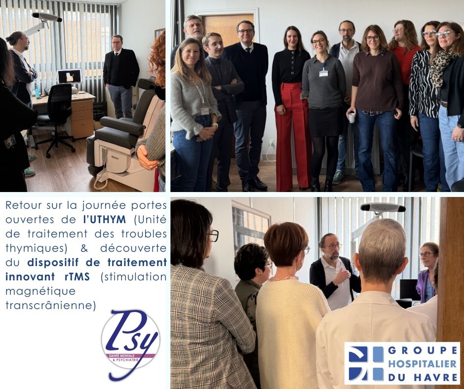 Le service de Psychiatrie du Groupe Hospitalier du Havre – GHH a rĂ©cemment ouvert les portes de l’UTHYM, situĂ© Ă l’hĂ´pital Pierre Janet, pour accueillir les professionnels du #GHH lors d’un temps d’échanges et de dĂ©couverte de cette unitĂ© spĂ©cialisĂ©e dans la prise en charge des troubles de l’humeur complexes (dĂ©pression, troubles bipolaires).