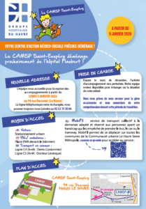 Le Centre d’Action Médico-Sociale Précoce Saint-Exupéry (CAMSP) a déménagé . Depuis LUNDI 5 JANVIER 2026 il vous accueille au 94 rue Desramé (Le Havre).