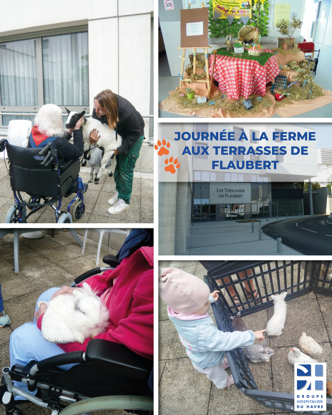 🐾 😃 Des animaux dans le patio des Terrasses de Flaubert du GHH pour le plus grand plaisir des aînés et des petits 👵👴 🧒 !