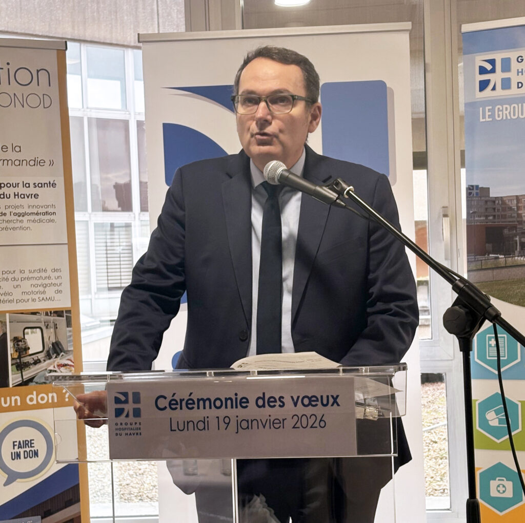 Ce lundi 19 janvier 2026, lors de la cérémonie des vœux du Groupe Hospitalier du Havre, Thierry Biais, Directeur Général du GHH, le Dr Florian Delaunay, Président de la Commission Médicale d’Établissement, et Édouard Philippe, Président du Conseil de surveillance du GHH, ont salué l’engagement remarquable des équipes en 2025.